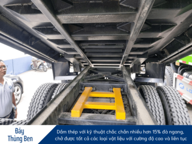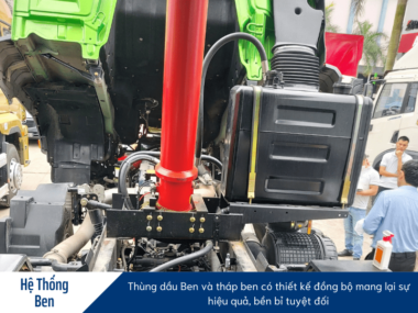Thùng ben của xe được sản xuất bởi Juton với kích thước lớn 6.350×2.300x900mm và được thiết kế theo hai dạng: thùng đúc U và thùng Vuông. Thùng đúc U được làm từ vật liệu có độ dày đáy lên đến 8mm và thành thùng dày 6mm, vượt trội hơn so với các sản phẩm thùng đúc từ các xe khác trên thị trường. Trong khi đó, thùng Vuông được gia cố bằng thép nhập khẩu, với độ dày đáy là 10mm và thành thùng dày 8mm, mang lại khả năng chịu lực và độ bền cao. Điều này đảm bảo rằng thùng ben của xe không chỉ có khả năng chứa hàng lớn mà còn đảm bảo an toàn và độ bền trong quá trình vận chuyển.