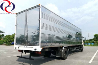 Thùng xe tải Dongfeng B180 dài 9m7 với thùng kín được thiết kế gồm 2 cửa sau…, giúp khách hàng có thể chọn lựa loại thùng đúng theo mặt hàng chuyên chở.