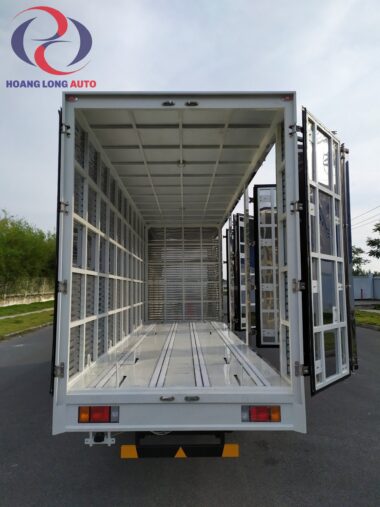 - Thùng Chở Pallet Đa Dạng Kích Cỡ: Xe tải NK550SL4 được thiết kế với thùng kín vách inox 1 lớp mở 6 cánh cửa hông, cho phép chở các loại Pallet có kích cỡ đa dạng, bao gồm cả Pallet 1,2m và 2,4m. Thùng cũng có khả năng chứa các loại Pallet dài hơn 2m kiểu chữ nhật.